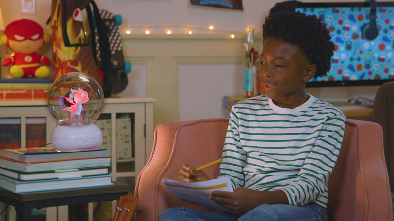 The world's first interactive holographic display for play. Step into a world of magic, learning, and play with the Imagix Crystal Ball. Inside this glowing globe lives a holographic companion your kid can interact with every day. At setup, families choose between Ellie the Fairy (gentle, imaginative, and encouraging) or Ember the Dragon (playful, adventurous, and bold).